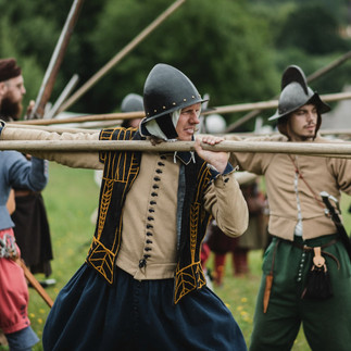 Główny punkt imprezy. Byłem bardzo zadowolony, bo lubię chodzić z drągiem. Fajna była współpraca pomiędzy muszkieterami oraz pikinierami, to zawsze daje radochę. Ogromne wrażenie zrobili na mnie przede wszystkim Flisu, Dawid i Maju. Czuć od nich kompetencję, doświadczenie oraz taki spokój, bez zbędnej gorączki itd. Brakowało większego wykładu Flisa, na co każdy z pikinierów czeka, oraz szybkiej „musztry” wewnętrznej i przypomnienia zasad BHP, bo to zawsze warto tłuc do głowy. O muszkieterach się nie wypowiem, bo nie moja działka, ale widać, że Dawid ogarnia. No i Maju, Maju ze swoim spokojem w głosie, powtarzający komendę, opisujący ją, potem gdy kazał nam ją wykonywać (wszelkie te „glidery” i „reneny”) to było mega przyjemne. W sumie najbardziej szkoda, że nie ćwiczymy nigdy chodzenia po bęben, bo to naprawdę pomaga, a wg. Mnie da się wyćwiczyć. A tak to ludzie człapią i się gubią i na siebie następują. Ale ja się nie znam, ja tylko łażę. Tak czy siak – manewry cudo, jak zawsze lepsze niż bitwy, które powodują ciarki żeżu (o tym będzie osobny wpis kiedyś).
