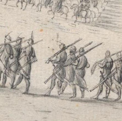 Wróćmy jednak do ikonografii. Innym bardzo istotnym źródłem jest przedstawienie piechoty węgierskiej, które znajdujemy w rycinie , której autorem jest Johann Ledentu, ‘Regni Hungariae confinia delineata, nempe ichnographiea urbium, propugnaculorum, arcium etc. in confinibus Hungariae et partium adnexarum contra Turcas existentium in septuaginta quinque tabulis’ z 1639 roku. Widać tam doskonale, że piechota ma osobno muszkiety (broń palną), a osobne pokrowce, które tylko w części posiadają wyraźnie zaznaczone futro:
