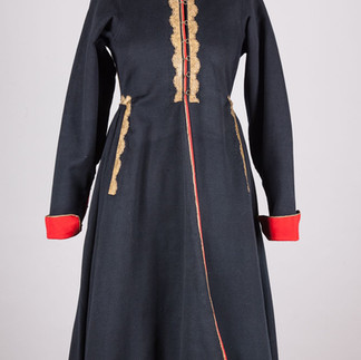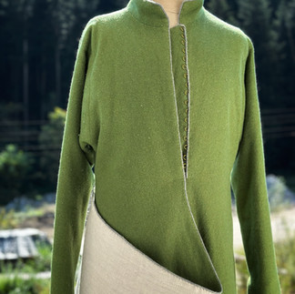 Całość będzie obszyta wełnianym szarym sznurkiem celem wzmocnienia brzegów. Ponadto żupan będzie miał rozcięcia kieszeniowe.